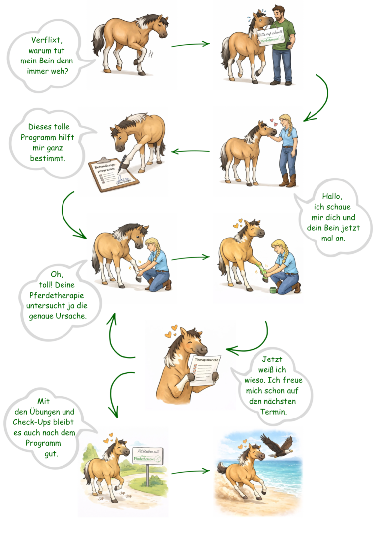 Jedes Pferd trägt seine eigene Geschichte in Körper und Bewegung - wir entschlüsseln sie behutsam, um Harmonie und Freiheit wiederherzustellen. So schaffen wir Raum, in dem Gesundheit, Stärke und Lebensfreude auf natürliche Weise wachsen können.